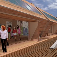 Design Competition for an Art Center providing support for young artist in the area of Dallas, Texas. Image was created using Google Earth imagery, Autocad, 3D Studio Viz and Photoshop.