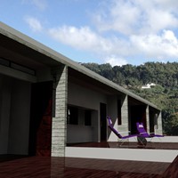 Design Competition for an Art Center providing support for young artist in the area of Dallas, Texas. Interior Patio View .Image was created using Autocad, 3D Studio Viz and Photoshop.